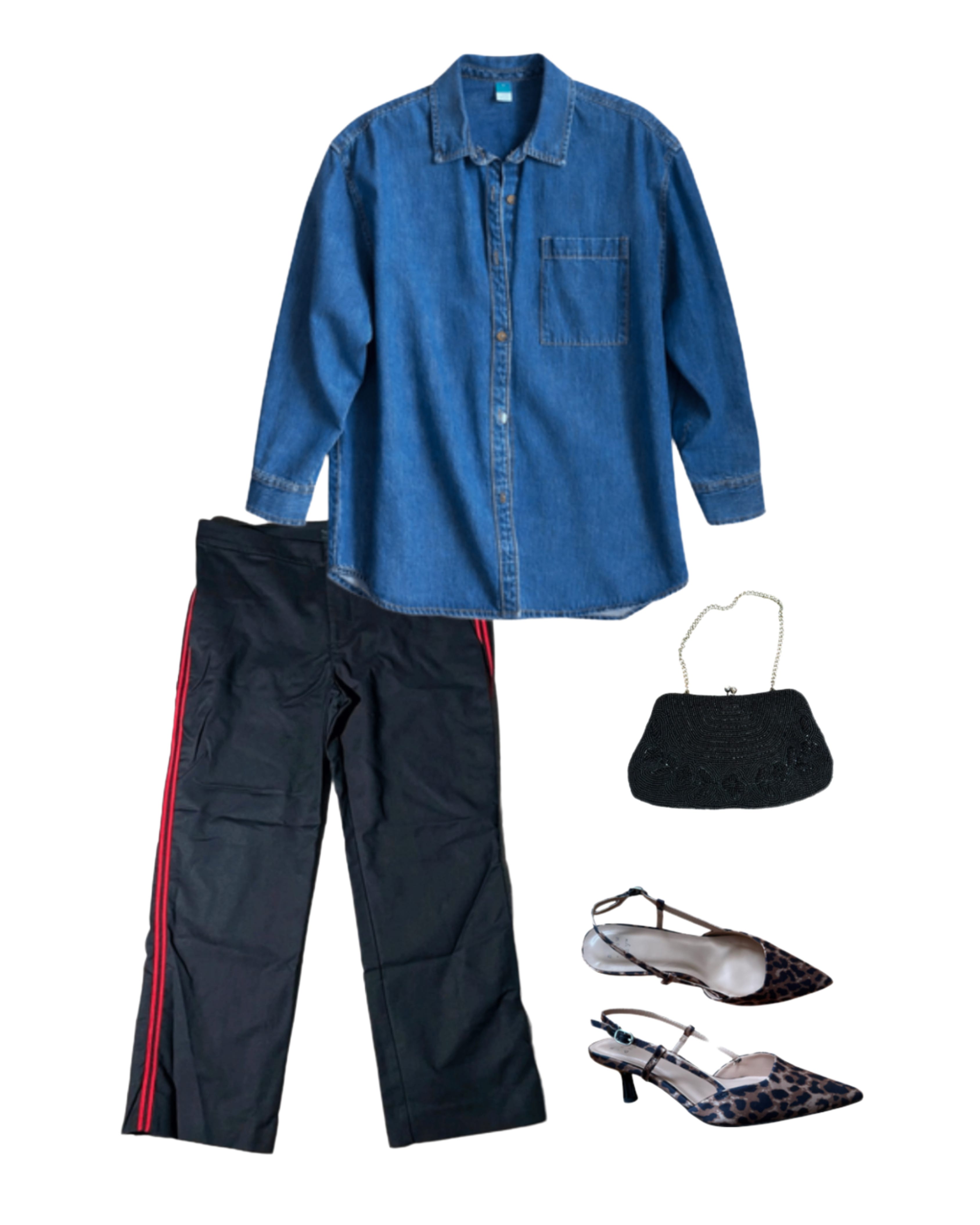 Love the track pants and denim shirt look! A signature nail color is so underrated. I have jt locked in for my toes— need to do better for my nails! Indecision paralysis js no joke!